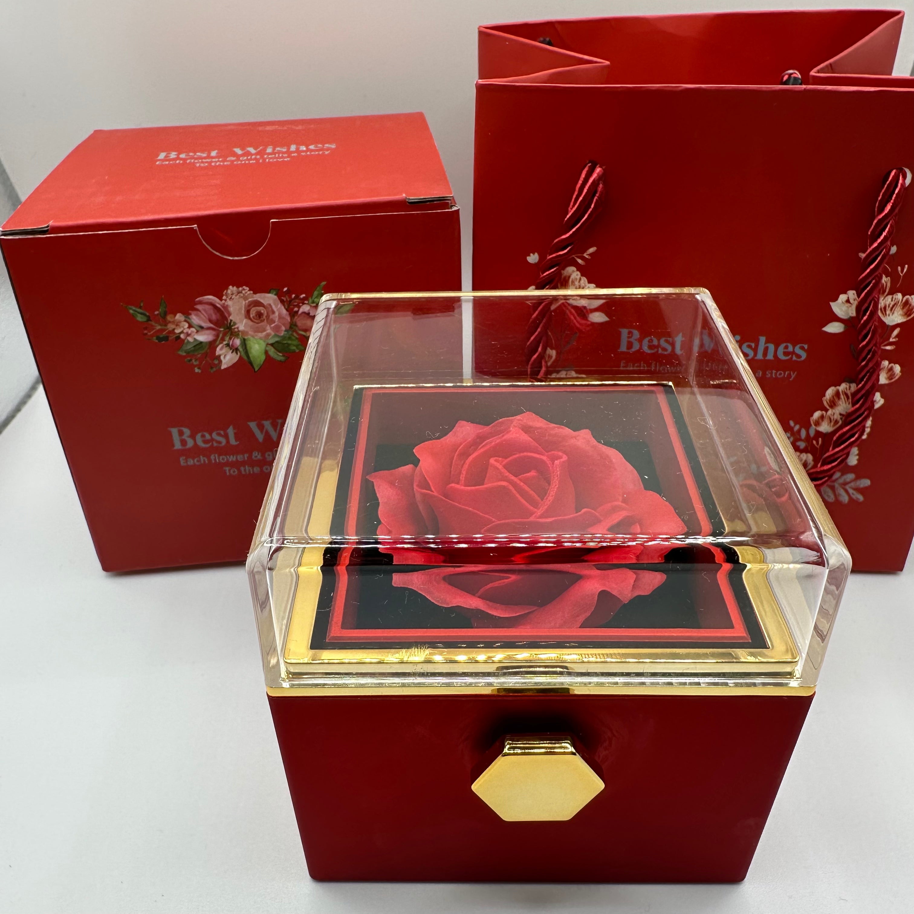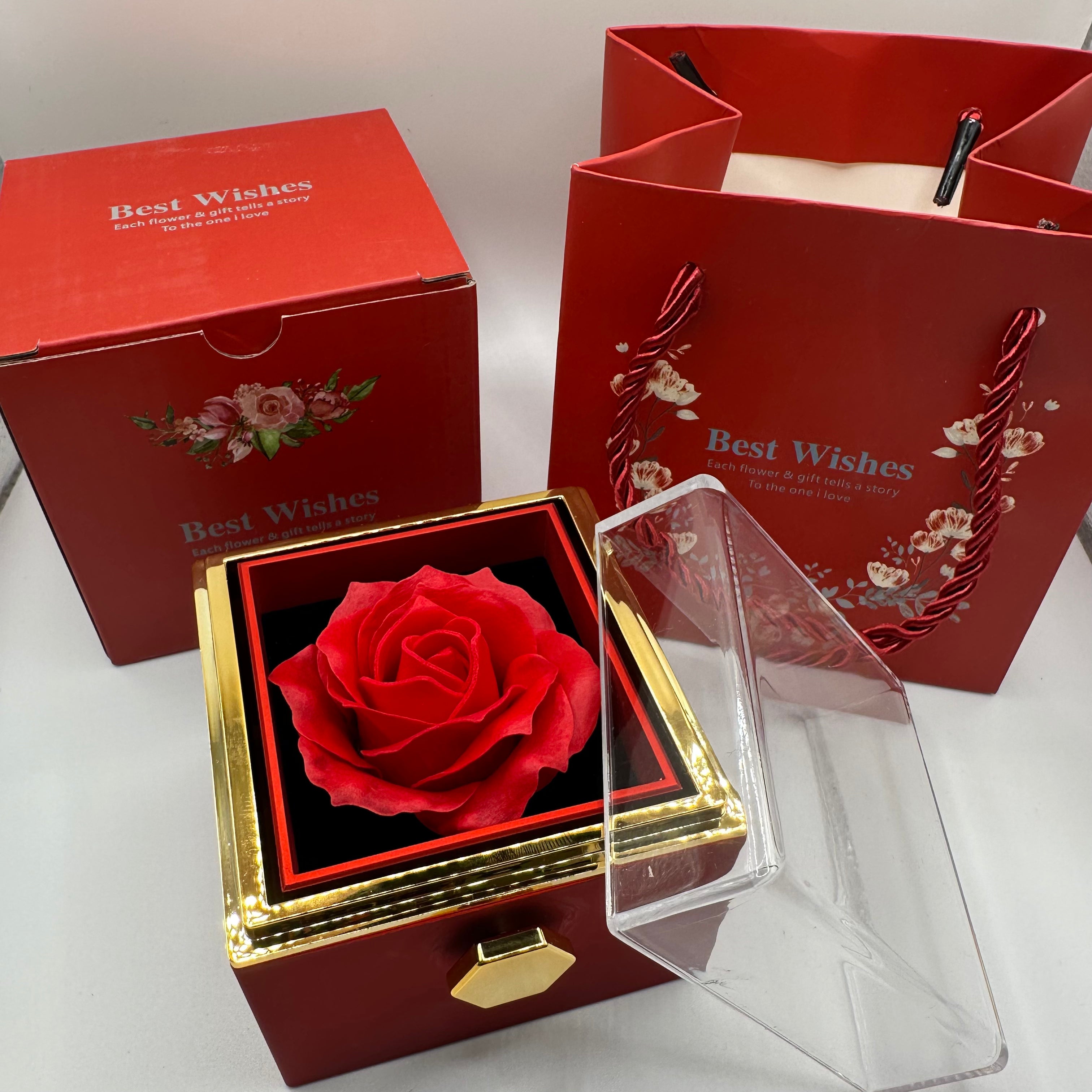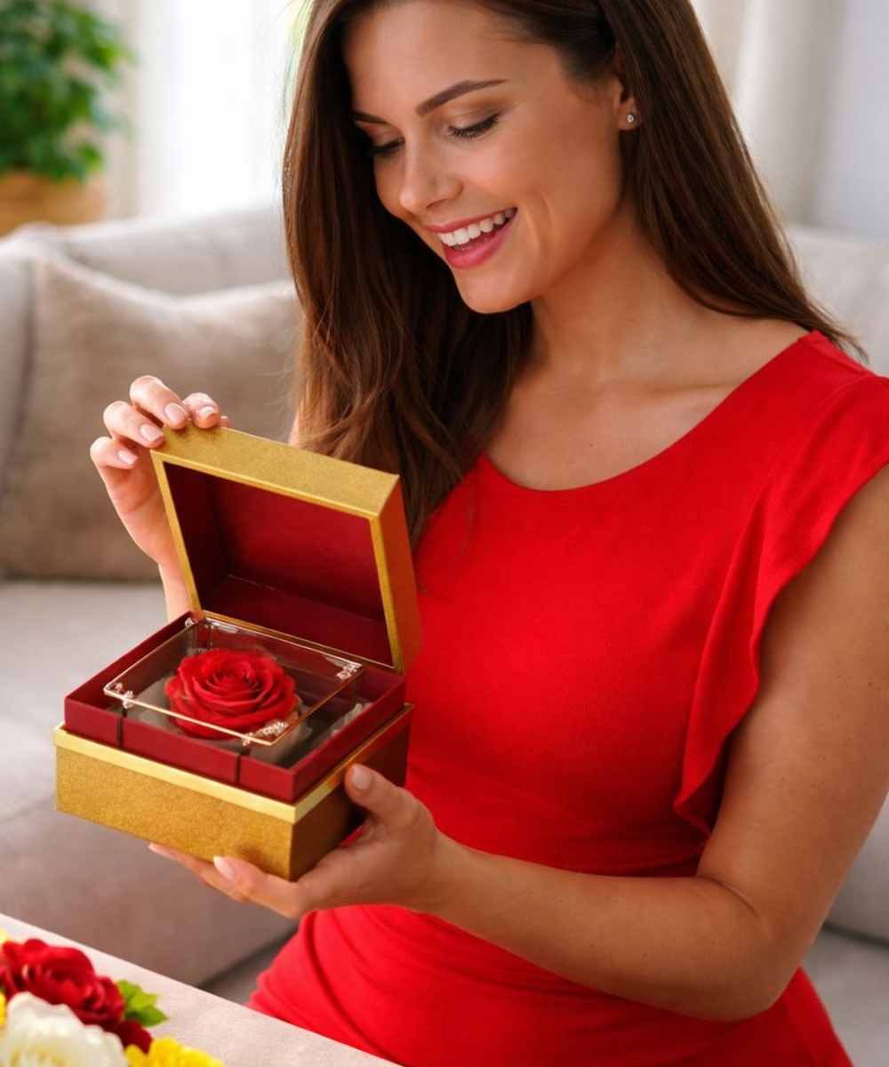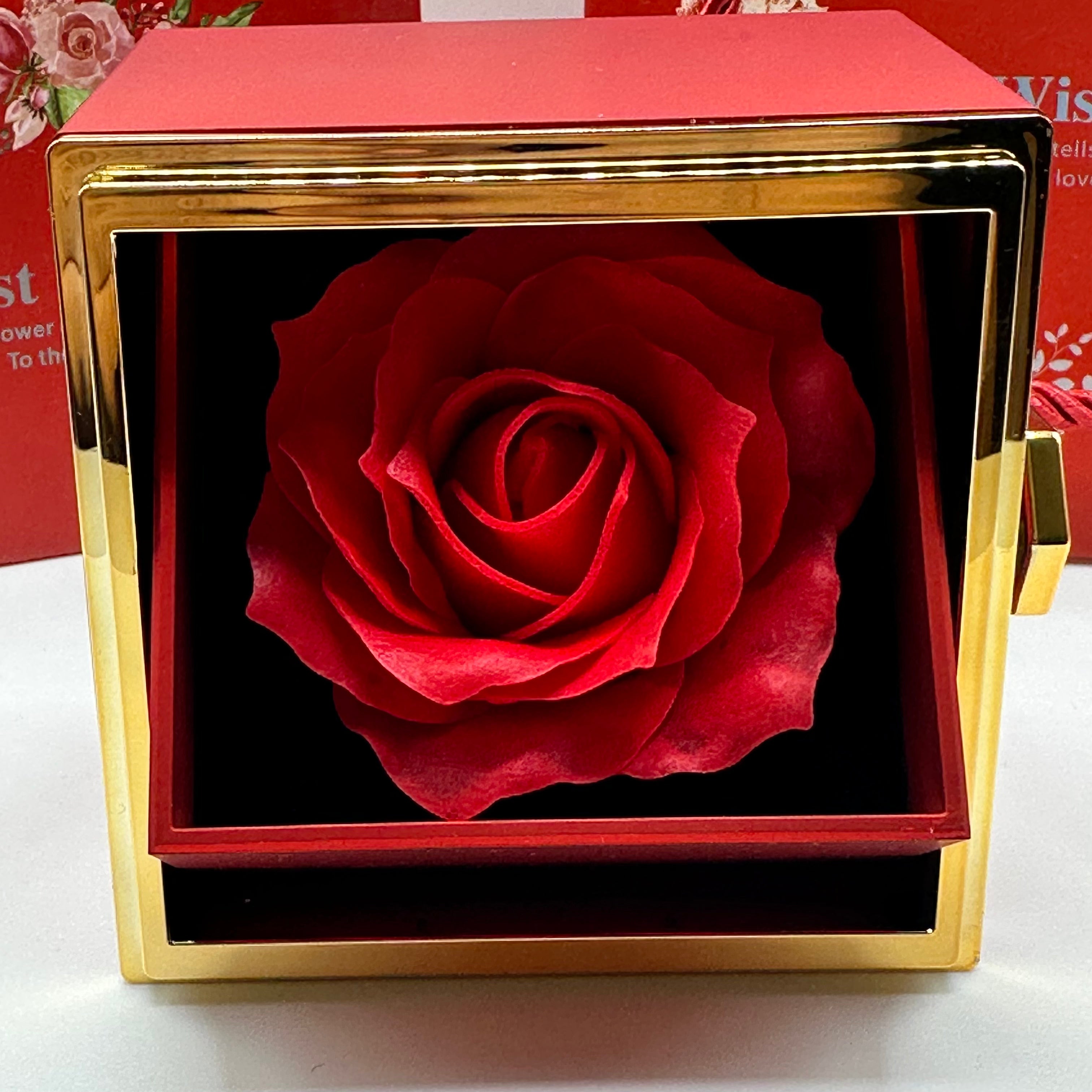 À l’intérieur, une rose éternelle.